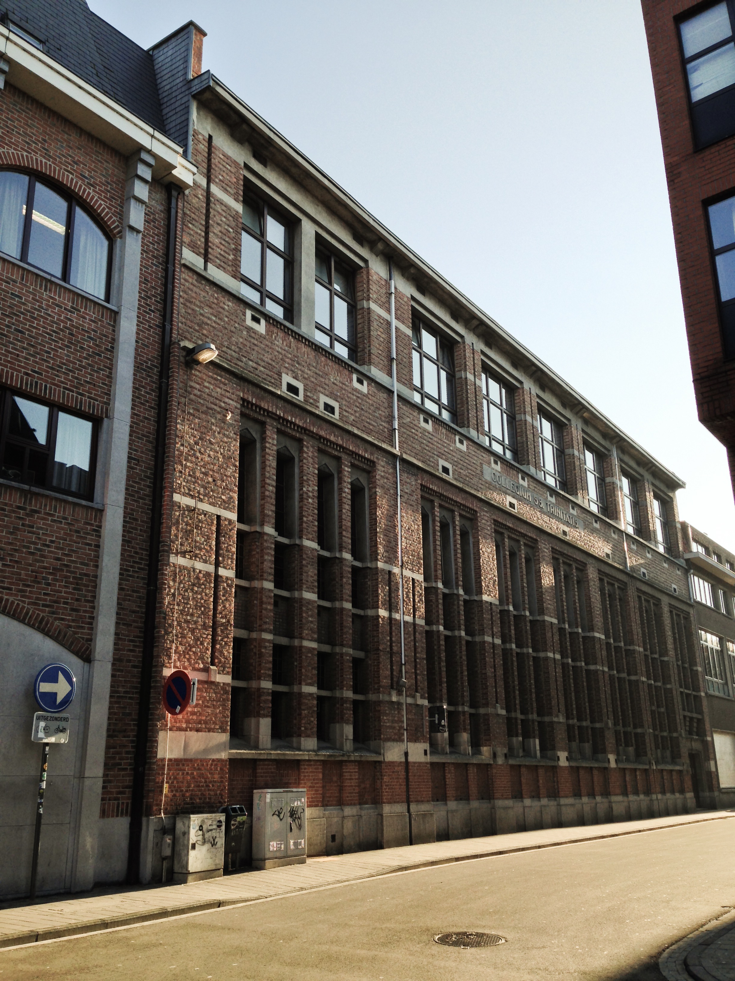 Waar je gaat langs Leuvense wegen kom je een gebouw van Léon Dierickx tegen. Dit is het ‘Collegium SS. Trinitas’ in de Parijsstraat. Het monumentale karakter van dat schoolgebouw gaat wat verloren binnen de context van die relatief smalle straat. Een foto nemen die recht doet aan dat karakter is dan ook niet makkelijk. Deze foto nam ik vanuit de Minderbroedersstraat. Dierickx had de gewoonte zijn gebouwen te handtekenen — gebeiteld in blauwe hardsteen. Ook dat wordt dus een projectje hier op Te Voet in de Stad: Dierickx, zijn bouwsels, en zijn handtekeningen.