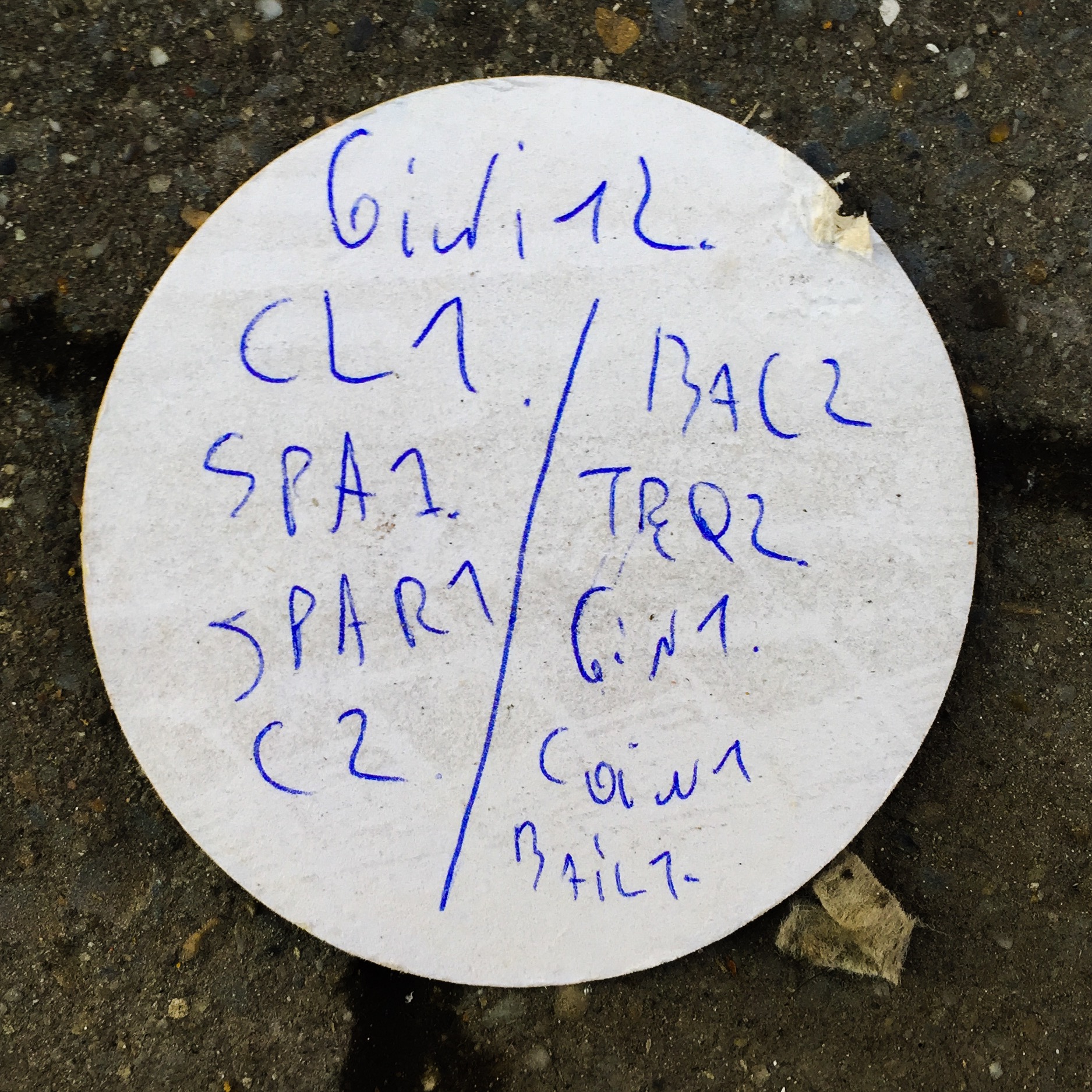 Een gezelschap van 24 personen gaat even iets drinken op de Oude Markt in Leuven. De ‘langste toog van Europa’, weet je wel, en ik weet nooit goed of we daar eigenlijk trots op moeten zijn. Des te interessanter is dit bierviltje, waarop een ober de bestelling heeft genoteerd. Meer dan twee derde van dit gezelschap houdt het alcoholvrij. Een professionele ober, denk ik, want hij/zij heeft duidelijk al wel eerder een bestelling opgenomen. C staat voor Cola, en CL voor Cola Light. SPAR is dan natuurlijk Spa Reine. Precies de helft van de groep drinkt Gini. Daarom denk ik dat dit mogelijk een jong-vrouwelijk gezelschap is, want voor zover ik het kan weten is Gini bij hen het populairst. Eén afkorting kan ik even niet thuisbrengen: TRQ. Iets Turquoise-achtig? De rechterkant van het viltje is de alcohol-categorie: twee Bacardi’s, één Gin, één Cointreau, één Bailey’s. Ook de aanwezigheid van Bacardi en zoete likeuren is mogelijk een indicatie dat dit om een vrouwelijk gezelschap gaat —maar ooit zal misschien blijken dat het een groep (zeer mannelijke) wielertoeristen betreft. Of wat denk je?