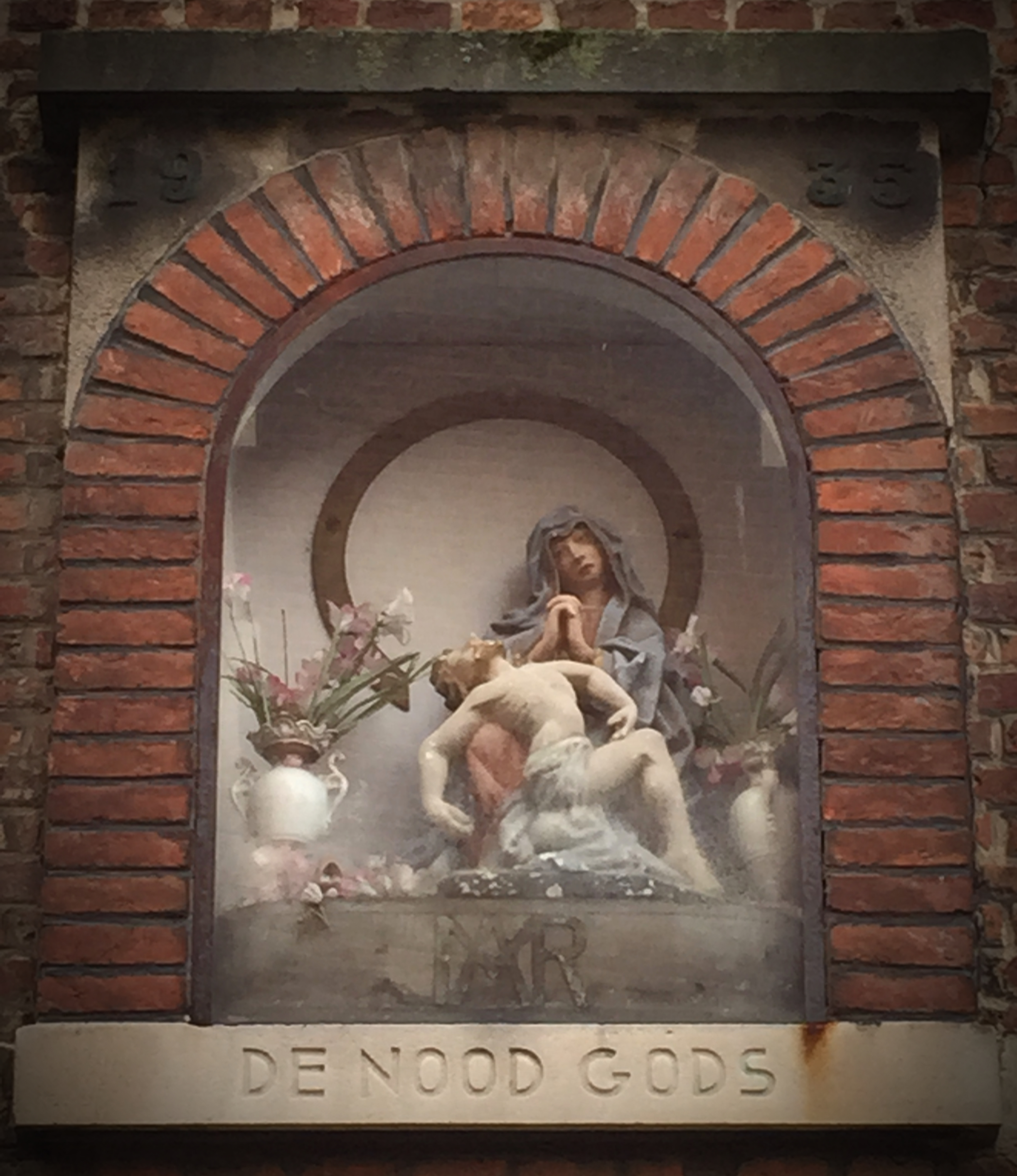 Merkwaardig muurkapelletje dat me tot voor kort nooit opgevallen was. Deze pietà werd in 1935 aan de gevel van dit Leuvense huis toegevoegd (dixit Inventaris Onroerend Erfgoed).