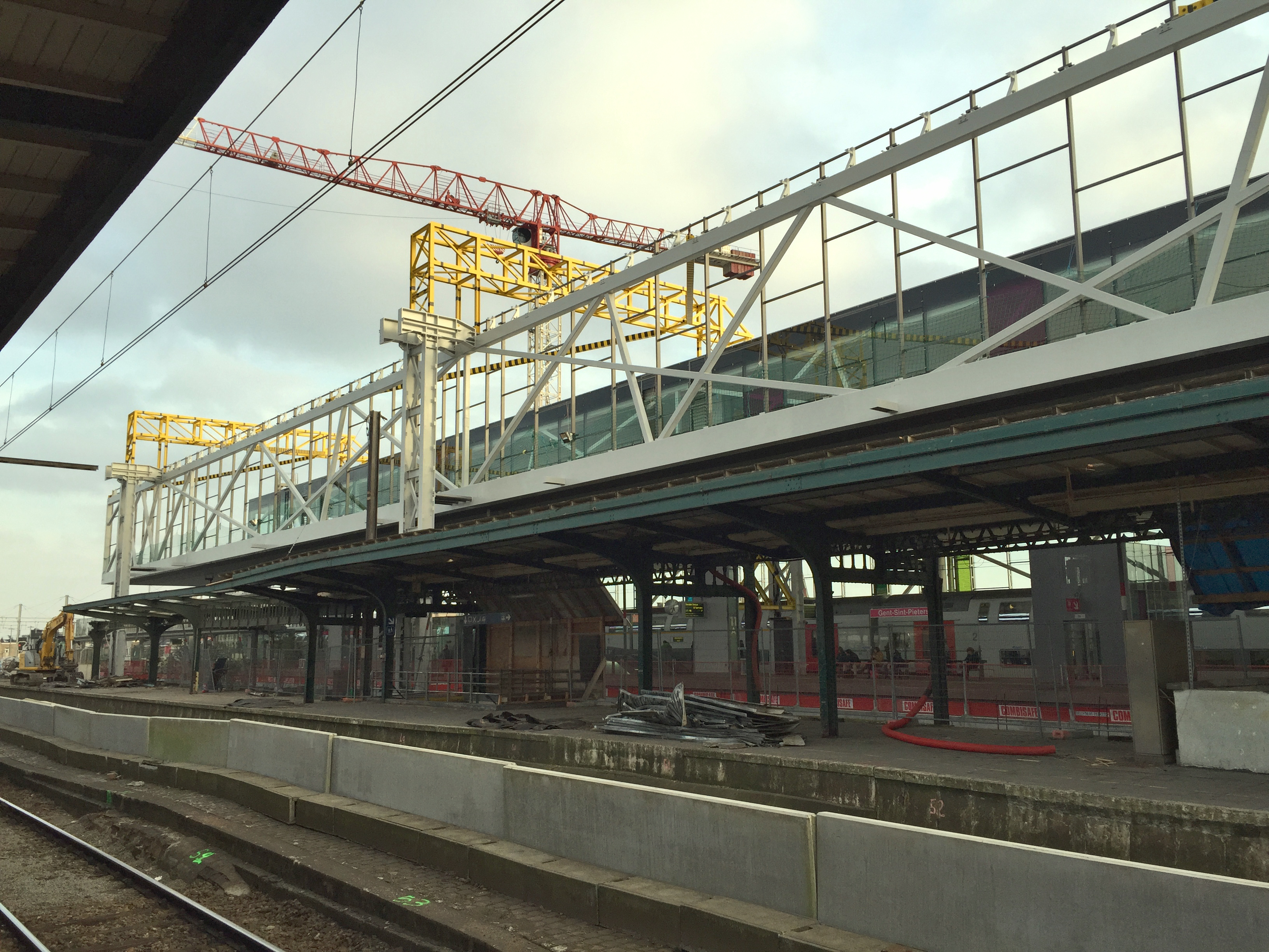 Foto: Gent Sint-Pieters, 9 maart 2015, Foto Hendrik Elie Vanden Abeele. Het station Gent Sint-Pieters ondergaat een spectaculaire transformatie. Soms denk ik dat het allemaal een beetje te veel wordt, te duur, zo’n transformaties. Het station van Brugge is een stuk minder megalomaan aangepakt. Dat ging sneller en het resultaat is goed genoeg, vind ik. Niettemin: ik kijk ernaar uit Gent Sint-Pieters in die dure volle glorie te zullen kunnen aanschouwen. Ooit.