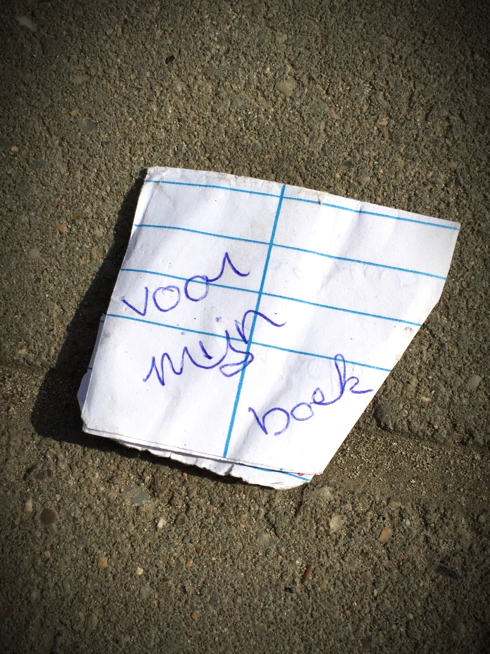 Best frustrerend, zo van die zelf opgelegde regels dat je niets mag oprapen. Dat zou hier mogelijk iets moois opgeleverd hebben. ‘Voor mijn boek’ — zalig.