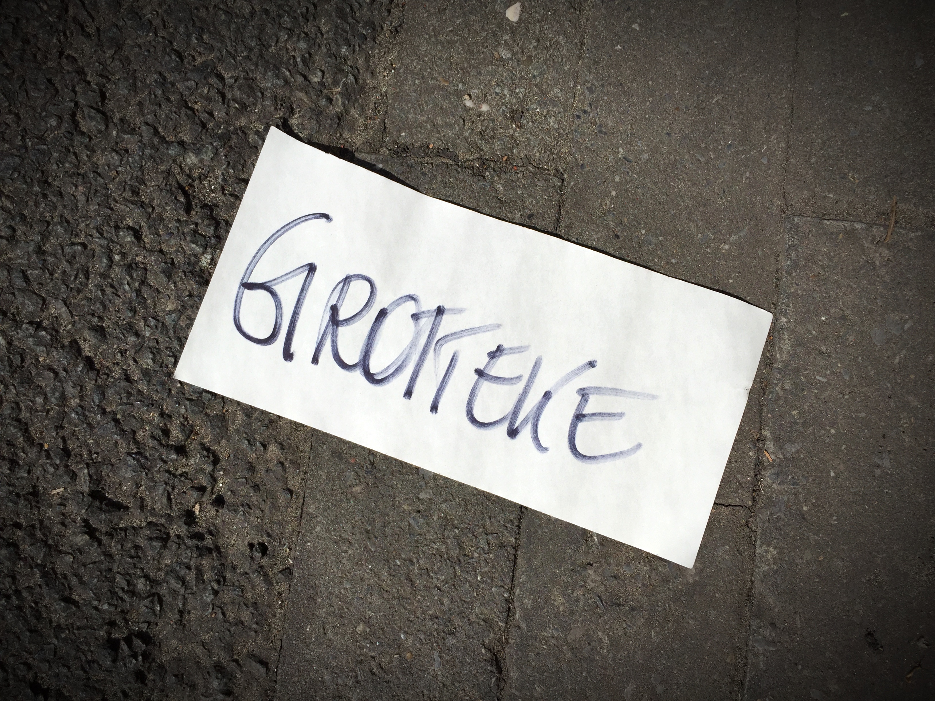 Dat is een frituur, hier om de hoek. Frituur ’t Grotteke — er lijkt bijna Girotteke te staan. Goeie frietjes, jonge en vriendelijke uitbater. Warm aanbevolen.